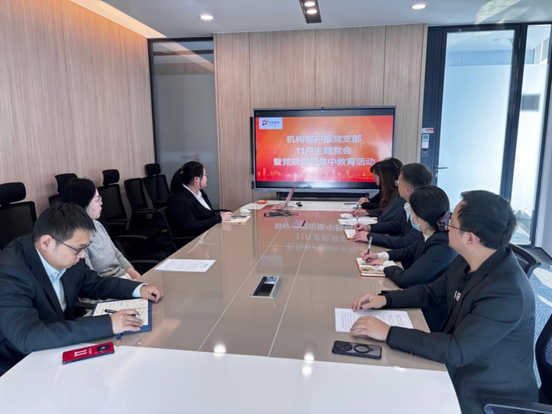 为深入学习贯彻党的二十届四中全会精神,近日,机构客户部党支部开展“深学细悟强党性,以案为鉴守底线”主题党日活动。活动通过政策理论学习与典型案例警示相结合的方式,引导党员坚定信念、严守底线 。