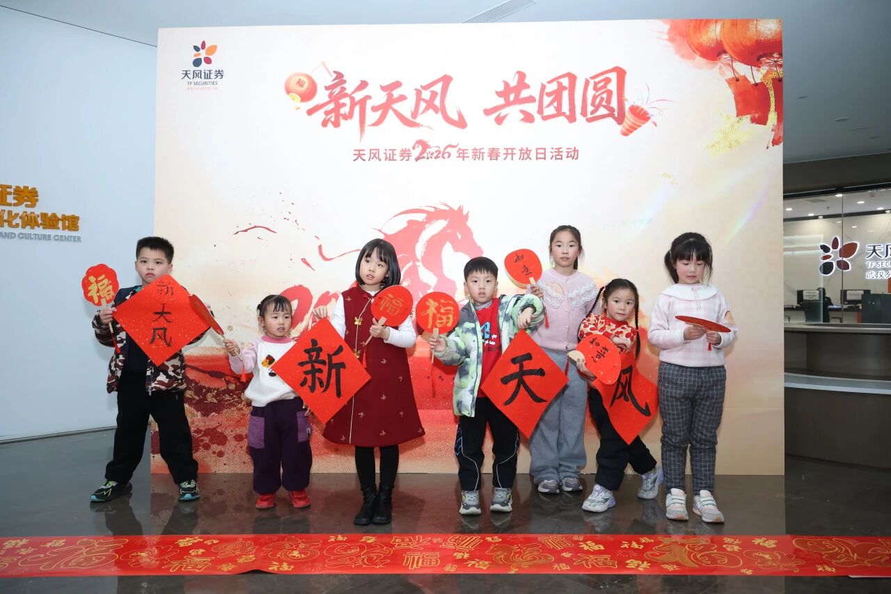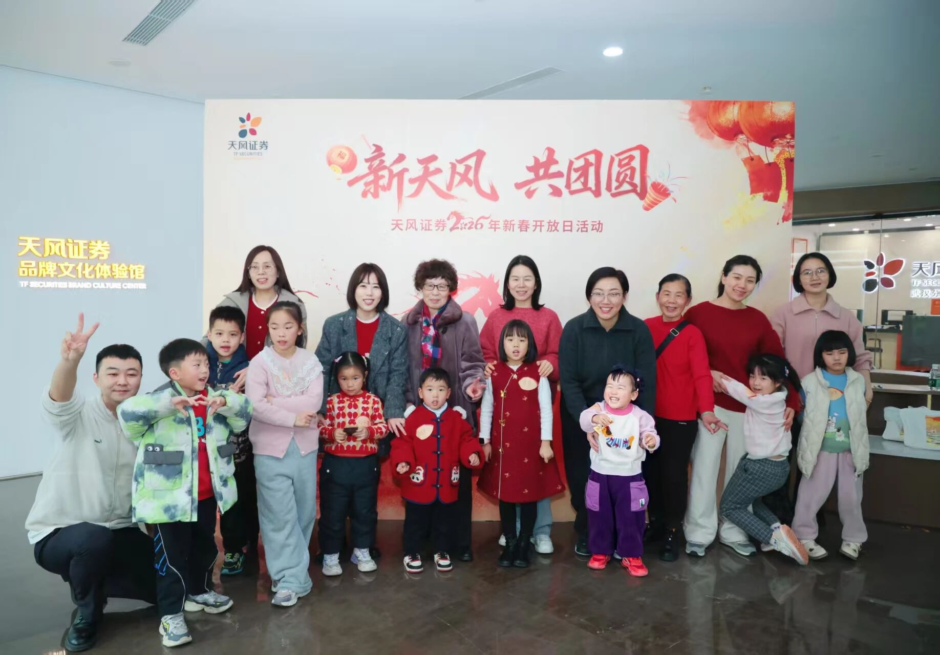 2月10日,农历小年启新程,FUN乐天使在武汉总部举办2026年新春开放日活动。本次活动以“新天风·共团圆”为主题,特邀10组员工家庭走进天风、感知天风,以沉浸式参观公司品牌文化体验馆、投资者教育基地,结合亲子互动形式,深耕企业“家文化”建设,强化员工的归属感与荣誉感,积极践行行业文化,传递公司对员工及家属的诚挚感谢与新春祝福。