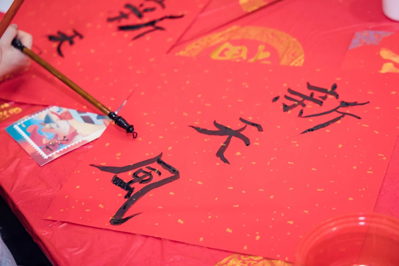 随后开展的“共绘新春”亲子书法活动将气氛推向高潮。活动特邀专业书法老师现场授课指导,家长与孩子一起提笔挥毫,共同书写春联与“福”字。墨香萦绕中,亲情流淌,每一笔每一画都寄托了对新春的期盼、对未来的祝愿。