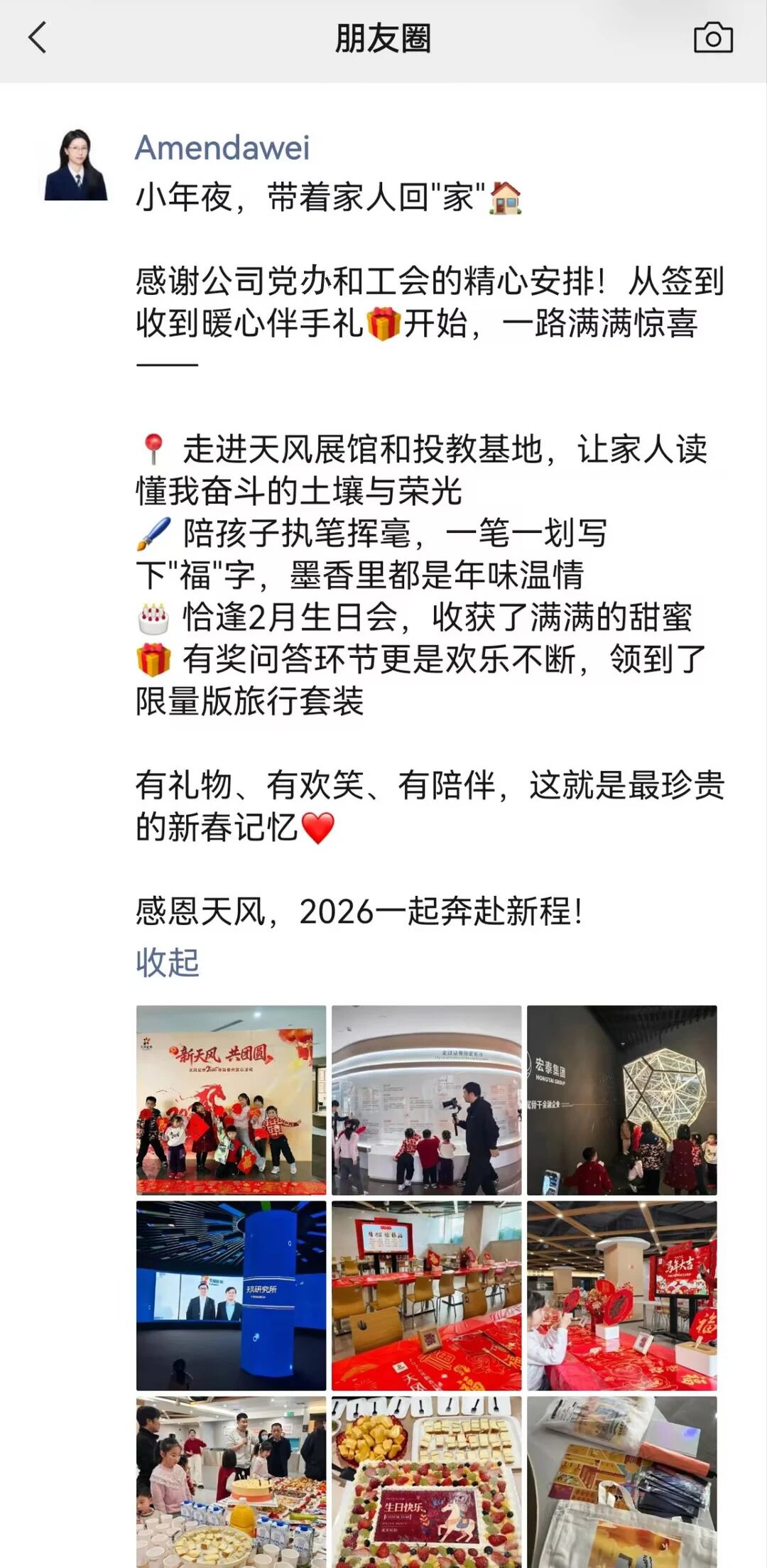 本次新春开放日活动是FUN乐天使践行行业文化、持续推进乐天使体育官网建设、深化“家企联动”的生动实践。未来,公司将继续秉持“以人为本、以才为先”的人才理念,不断完善员工关怀体系,搭建更多家属互动平台,与全体天风人及其家属携手同行,驰骋向前,共赴更加辉煌的未来。