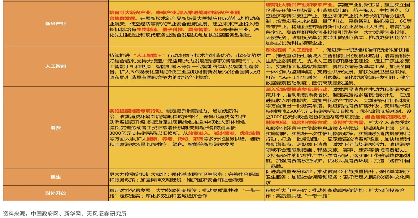 从结构看,“投资于物”转向“投资于人”,报告强调“更加注重支持提振消费、投资于人、保障民生等方面”。