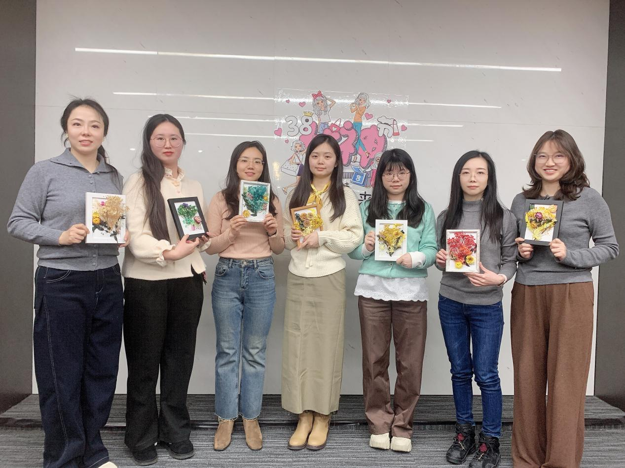活动还设置温馨互动环节,工会精心准备定制小礼品、花艺周边等福利,通过抽奖赠予幸运女员工,现场气氛一次次被推向高潮。大家纷纷拿起手机,定格作品与笑脸,用合影记录专属美好。活动尾声,大家相互欣赏成品、真诚赞美,在欢乐氛围中收获了手工好物与同事间的深厚情谊。