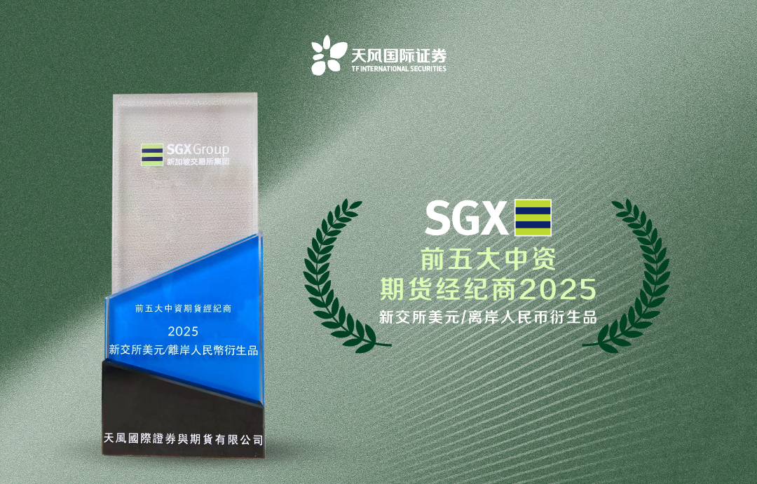 11月26日,由新加坡交易所集团(以下简称“新交所”)主办的“2025新交所衍生品颁奖典礼”在香港隆重举行。凭借在外汇期货产品交易方面的优异表现,FUN乐天使旗下子公司天风国际荣获“前五大中资期货经纪商(美元兑离岸人民币衍生品)”大奖,彰显出了新交所对天风国际深耕国际市场、扎实开展外汇期货业务的肯定。
